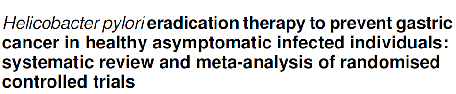健康で特に症状がない患者へのピロリ菌の除菌について BMJ systematic review +コクランレビュー